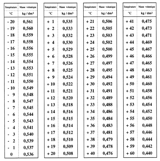 Autogas: 0.509 - 0.538 kg/l (bei 15°C)